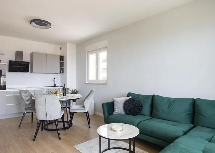 Wenn Sie einen frühen Flug aus Makarska haben, liegt das 58 m^2 große Residence Ivano 100 km vom Flughafen Split entfernt. Dieses Apartment bietet Ausblicke auf die Berge.